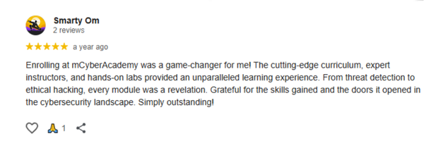 M Cyber Academy is India’s leading Ethical Hacking and Cybersecurity Training Institute. We empower learners with practical, hands-on training in Ethical Hacking, AI Security, Penetration Testing, and Digital Forensics. Our goal is to create the next generation of cybersecurity experts ready to secure the digital world.